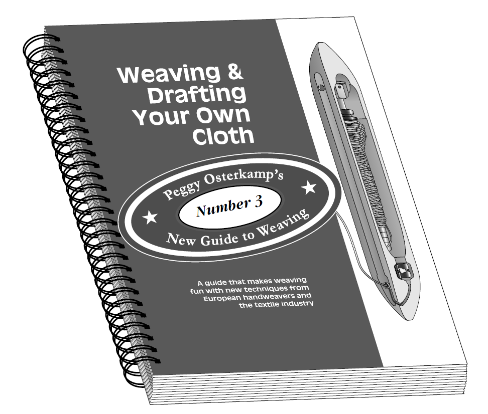 In Book 3 of the series Peggy Osterkamp’s New Guide Weaving guides you through every step from weaving motions, shuttles and selvedges to finishing your cloth. When problems come your way, an extensive chapter on troubleshooting helps you through them. The drafting chapter explains how to create your own designs as well as to use drafts in books and magazines. It is written for novice and experienced weavers and teachers, and especially for those weavers who think they will never understand drafting. Step-by-step summaries at the ends of chapters provide quick reference at the loom, over 365 illustrations, and a comprehensive 17-page index help you visualize every detail and find every solution. Having Peggy’s books at your loom is like having a patient teacher at your side.